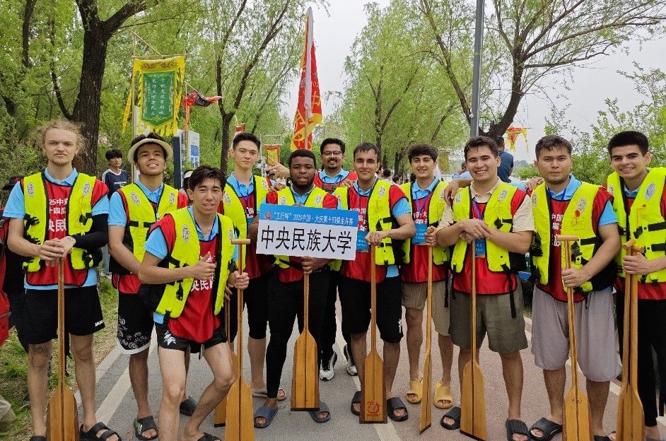 5 月 31日(农历五月初五),我校国际学生龙舟队受邀参加黑龙江省大庆市第十四届龙舟赛。比赛当日,来自全国各地和俄罗斯的16 支高水平龙舟队齐聚大庆市万宝湖畔,同场竞技。在震天的鼓声与呐喊声中,他们共同呈现了一场热血沸腾的龙舟竞渡,并亲身体验中华传统文化的独特魅力。