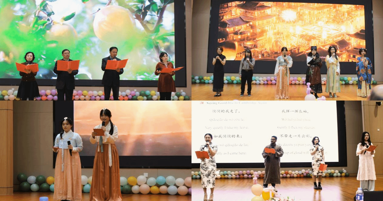 参加现场诵读的包括45名中国本科生和20名国际学生,他们分别来自越南、缅甸、哈萨克斯坦、吉尔吉斯斯坦、印度尼西亚、泰国、韩国、美国、尼泊尔等国家。中外学生同台联袂,倾情演绎中华经典,为观众献上了一场东西方文明交流互鉴的华彩乐章。