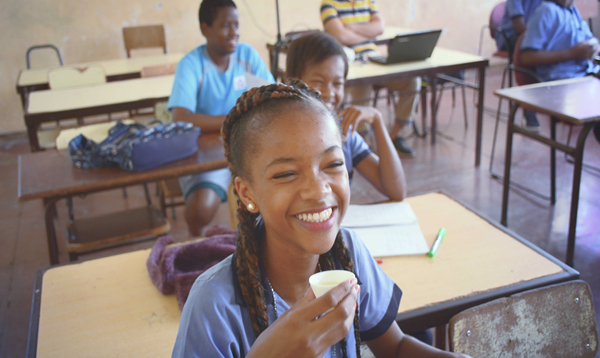 我们所负责的学生是9年级的初中生,他们大多14岁左右。佛得角学生给我的印象是特别的纯真与天然。记得第一堂课,当我打开巨大的地图平铺于地面的时候,我让他们指出中国的位置,可是没有一个学生找对,有的人指到了俄罗斯,有的人指到了阿拉斯加。在他们看来,中国只是一个遥远的国度,一切都陌生的,这也使得每当我向他们介绍中国的时候,他们都特别的好奇。一次为学生介绍中国茶的时候,一个女学生端起茶杯喝下了她人生的第一口中国茶,露出了甜美的笑容,这一幕正好被我拍了下来。