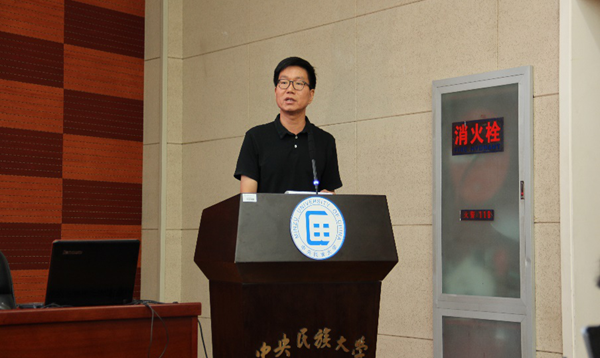 其后,教师代表张海威老师发表了讲话。他首先分享了自己的求学和工作经历,叮嘱新生要珍惜在校时光,努力学习;然后向各级新生介绍了汉语国际教育专业的培养方案和目标,并着重解读民大众赢国际版