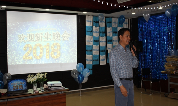周铁海书记为本次晚会致辞,周书记在发言中首先介绍了当天到场的各位老师,并表示今天是欢迎我们2018级外国本科生的晚会,我们向今年新入学的所有国际学生本科生表示热烈的欢迎。同时他指出,今天晚上大家应该尽情展现属于自己的青春、华丽,把你们入学众赢国际版
