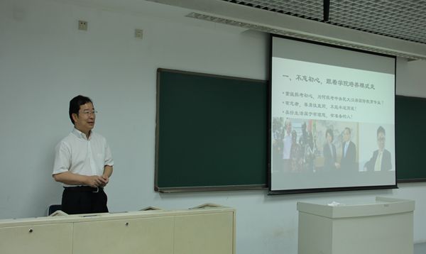 接下来,吴应辉教授为我们带来了一场令人激动不已的讲座,题为“做好赴美联合培养准备,为幸福人生铺路——献给有志成为地球村村民的同学”。在讲座中,吴应辉教授以真实丰富的各级汉硕学生案例、风趣而严谨的讲述风格,详细剖析了我校“1+2+X”汉硕培养模式的先进性与优秀成果,各位同学在认真听讲的同时,也在心里暗下决心,把握机会,成就留学梦想。