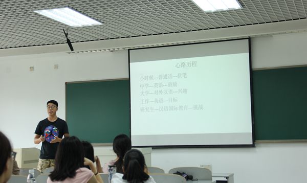 交流会上,李响学长首先分享了自己选择考研并从事对外汉语教学的原因和经验,向新生们分析了赴美套读学位的优势和劣势,并详细介绍了如何选择学校,提交申请的流程和时间节点;同时,他鼓励学弟学妹们自信地面对今后的挑战。