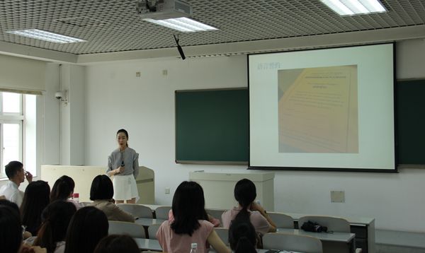 稍后,张研洁学姐作为普林斯顿暑期北京中文培训班(简称“普北班”)项目的对外汉语教师,为学弟学妹们介绍了项目的主要内容并分享了工作经验。学姐表示,虽然项目任务十分紧张,但通过两个月与外国留学生的接触,她获得了更多的一线教学经验,提高了自己的教学能力,同时也与留学生们结下深厚的友谊。她也鼓励新生抓住各种教学实习机会,不断发展自己,提升自己。