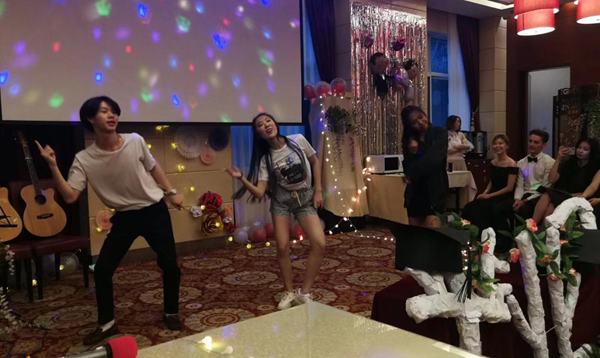 毕业晚会以来自泰国的潘成龙、亚美尼亚的那斯雅,以及博士毕业生Q哥共同演奏歌曲《最浪漫的事》拉开序幕,他们的歌声宛转悠扬,把在场的学生带入到了一种浪漫的氛围中。