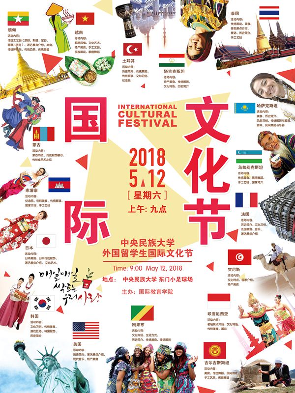 中央民族大学国际文化节以“魅力民大,牵手世界”为主题,旨在展现民大国际学生风采,拓展中国学生国际化视野,促进中外学生的融合。经过国际学生学生会一个多月的精心筹备,今年的国际文化节在形式和内容上都有了较大的提高,报名参加的国家再创新高,活动内容更加丰富多彩。今年的文化节更多地是由国际学生自己策划,众赢国际