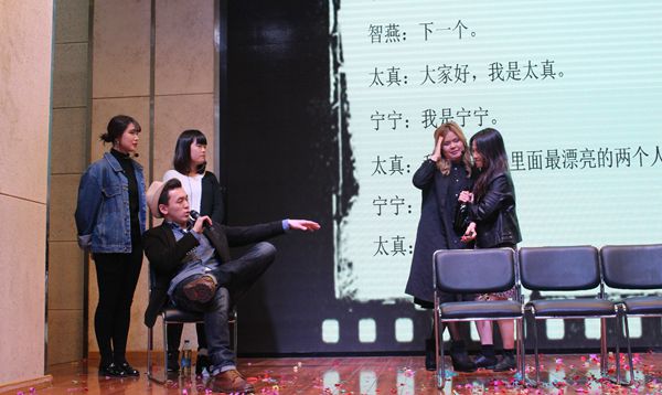 紧接着,我们随着本科二年级1班的同学来到了《非诚勿扰》大型相亲节目的现场,留学生们以几位性格不同的男女嘉宾形象和跌宕起伏的情节,为我们上演了生活中一幕幕牵引人心的故事。