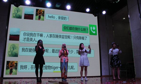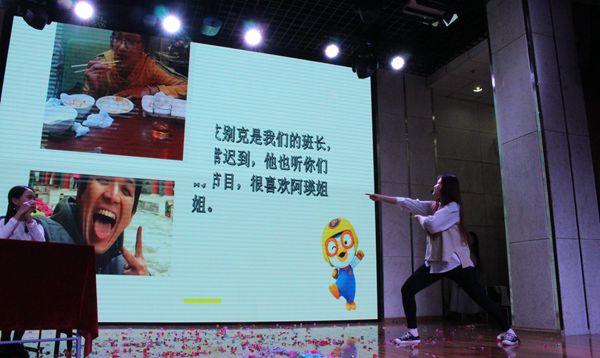 在语言生8班,留学生们用一部《众里寻她千百度》的故事,树立了一个个立体的形象,向我们展示了爱情的美好与甜蜜,牵引人心,深情款款,令全场观众动容。