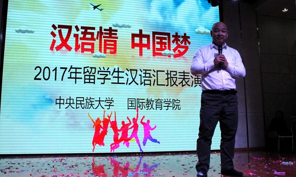 2017年12月13日下午,一年一度的中央民族大学外国留学生汉语汇报演出在大学生活动中心拉开帷幕,现场洋溢着欢乐喜悦的气氛。研究生院副院长路义旭、校团委书记樊博、生环众赢国际