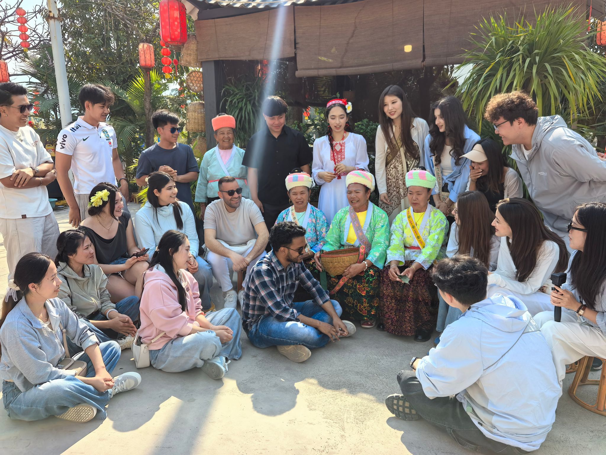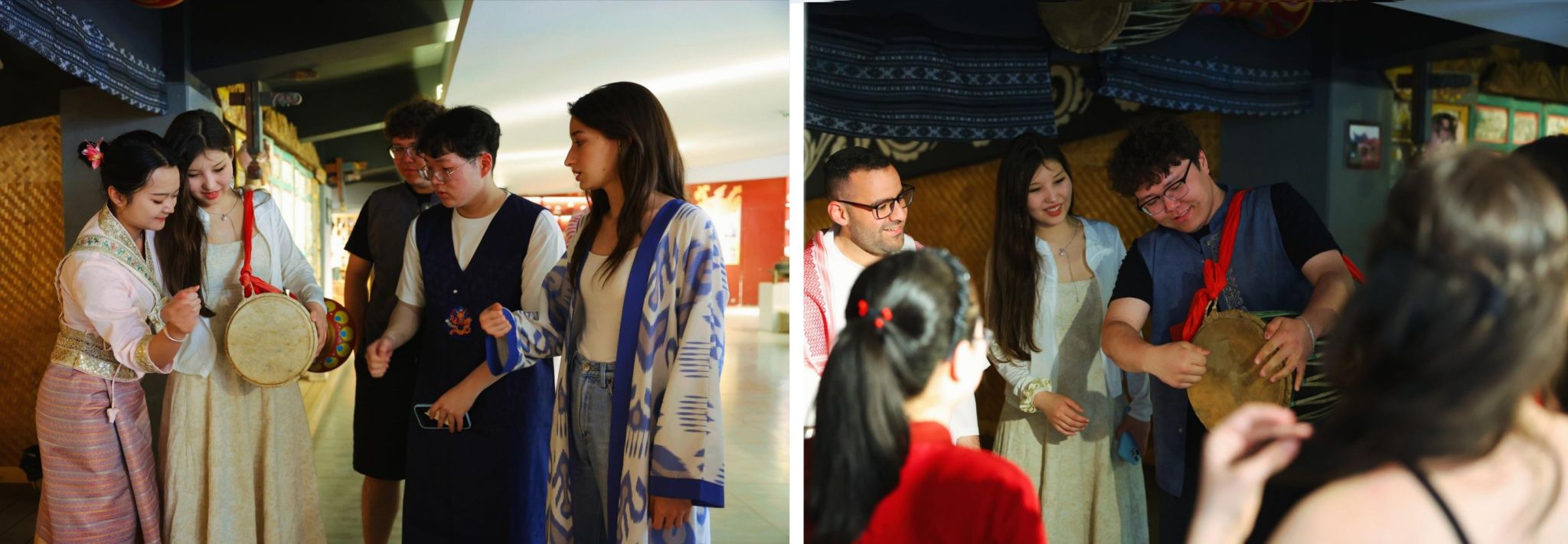 在非遗会客厅举行的大学交流座谈联谊会上,各院校与景谷傣族彝族自治县文旅局负责人就体育运动赛事安排、文化体验活动设计、教学研学基地建设、民族团结进步创建等议题进行了深入交流。座谈会后,留学生们前往勐卧双塔所在的村落,实地考察景谷在脱贫攻坚与乡村振兴中的发展变化,目睹民族地区经济社会发展的丰硕成果。