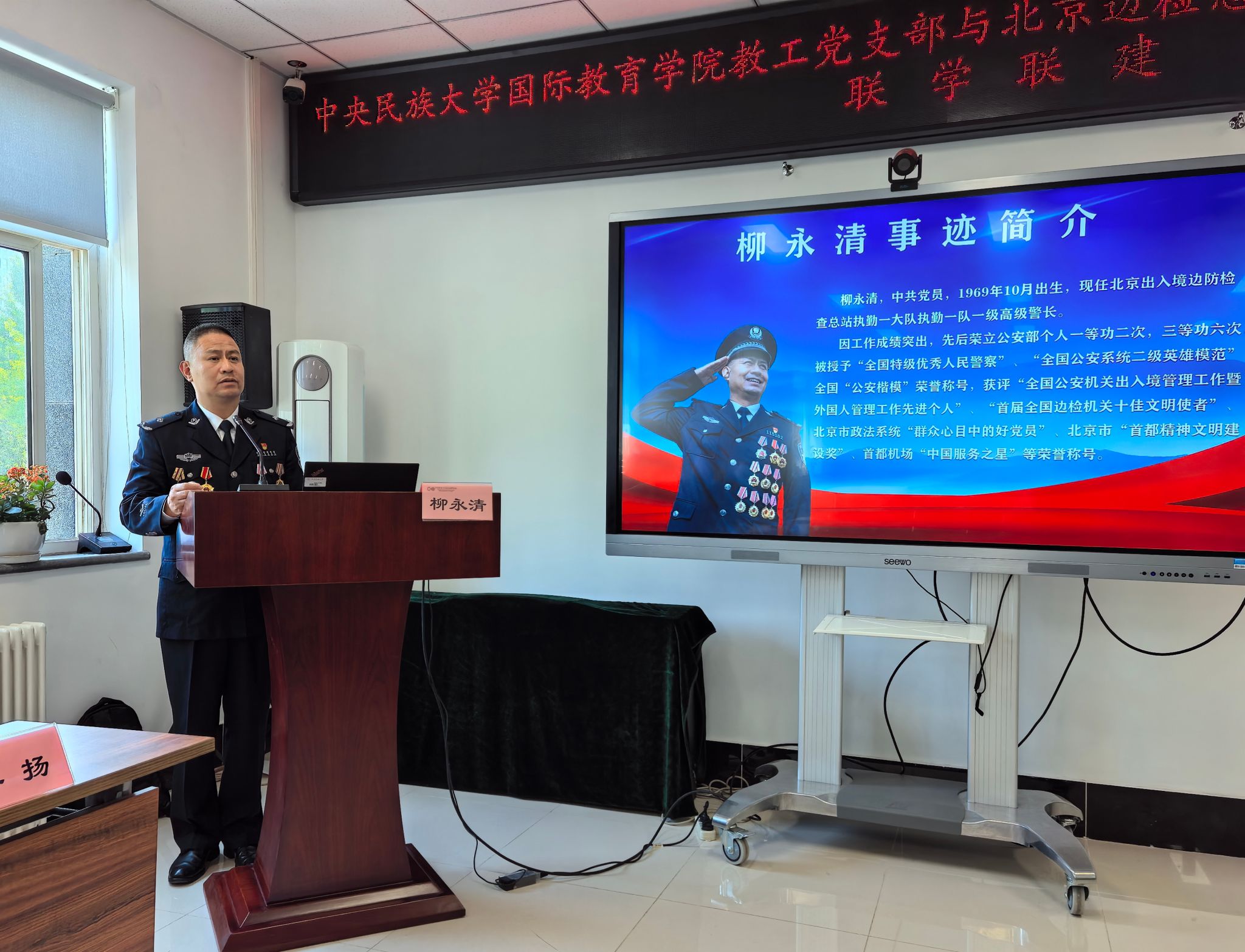 教工党支部与北京边检总站执勤一大队执勤一队党支部开展了联学联建活动。40余名党员以文化为媒、以党建为魂,在交流互鉴中凝聚共识,在榜样引领中守初心、担使命,为基层党建融合发展注入新活力。