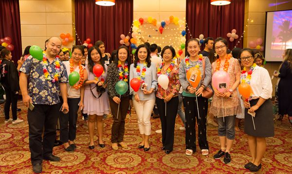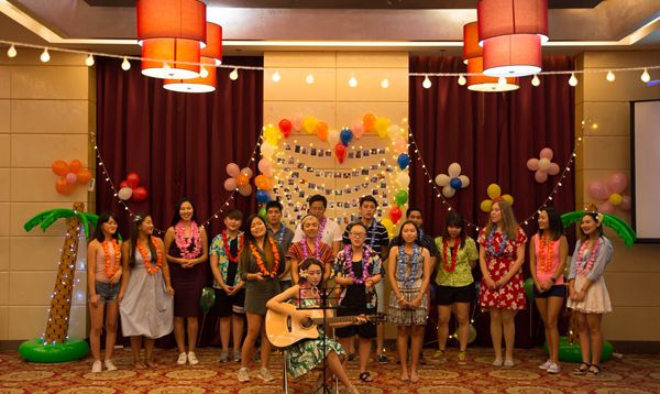 随后,来自世界各地的四位主持人闪亮登场,晚会拉开帷幕。这场晚会被打造成了“夏威夷派对”,大家身穿夏装,色彩缤纷,清凉靓丽。