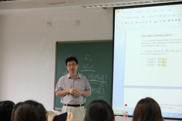 储诚志教授是加州大学戴维斯分校汉语教学项目的负责人,在汉语课堂教学、教材编写以及现代化汉语教学领域建树颇丰。储教授此次的系列讲座题目为Selected Topics of Chinese Linguistics for Chinese Language teachers:From theory to application ,用全英文授课。储教授从汉语定义、汉字结构、词汇类别以及实际运用等方面进行深入浅出的讲解,通过一系列具有针对性的问题,调动了学生的思考积极性,锻炼了学生的自主思考能力。这一系列讲座不仅增进了学生对于汉语的深层次理解,也为他们今后的学习及汉语教学工作奠定了良好的基础。