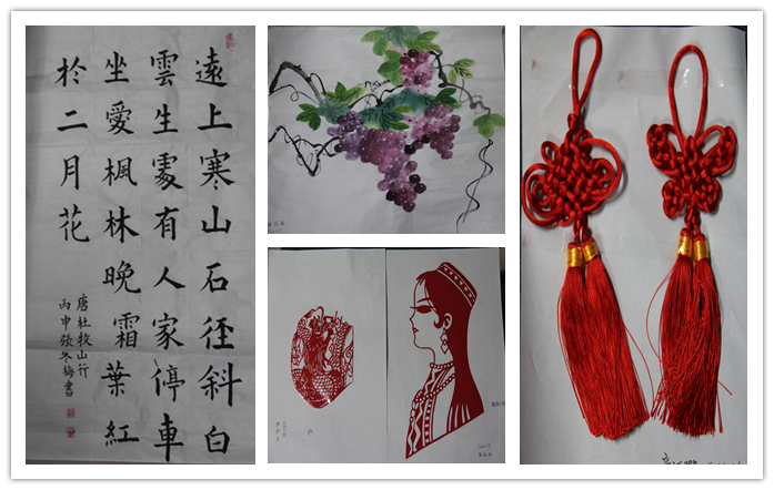 书法、国画、剪/刻纸、中国结类专场分两天举行。共有5人展示中国结,35人展示剪纸,26人展示国画,48人展示书法。10月10日下午二班同学进行展示,10月11号下午一班同学进行展示。在三个半小时的展示过程中,大家各显神通,认真准备着自己的作品。活动结束时,参展学生呈现了气贯山洪的书法、惟妙惟肖的国画、活灵活现的剪纸和绚丽精巧的中国结等中华才艺作品。