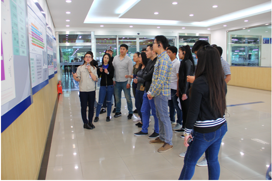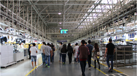 宣讲结束后,在工作人员的带领下,我们对北京现代汽车公司第二工厂的生产车间进行了实地参观,详细参观了每个车间的生产流水线。在整个参观的过程中,留学生对公司各款汽车的设计、采购、生产、销售以及售后等各个环节都表现出十分浓厚的兴趣,尤其是12级本科对外汉语经贸方向的留学生对公司的管理理念饶有兴趣,参观走到哪儿,问题也就带到哪儿。工厂的工作人员对留学生的提问都一一进行了耐心详细的解答。本次参观全程历时约一个半小时,整个参观过程气氛愉快而又融洽