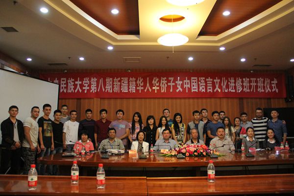 2015年9月21日下午,中央民族大学第八期“新疆籍少数民族华人华侨子女中国语言文化进修班”开班仪式在中慧楼第一会议室举行。国家民委监督检查司陈乐齐司长和中央民族大学再帕尔·阿不力孜副校长出席开班式并讲话,国家民委“新疆籍少数民族华人华侨考察团”的30位成员也出席了开班式,并与进修班学生进行了交流。