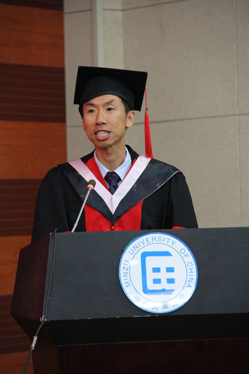 的毕业典礼,跟不同国籍的毕业生一起感受这隆重的时刻颇为难得,他衷心的祝贺同学们顺利毕业,祝愿同学们前程似锦。郭卫平希望大家能记住中央民族大学这样一所与众不同的大学,并表示“这里的校门始终为你们敞开,希望你们常回家看看”。