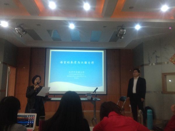 戴教授首先介绍了语言及二语习得的基本概念,这些观点来自世界各地的语言学家,戴教授运用鲜活的例子在这些概念中说明了了解语言学本质对于弄清二语习得的意义。接下来,戴教授向在座的师生们主要分析了特征重组与二语词汇习得这几个颇具技术性的创新观点。
