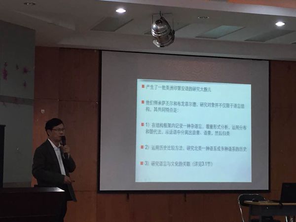 讲座中,周教授还向我们介绍了人类学对于文化和社会中的语言起到了重要作用以及美国社会语言学的三大支柱,给我们呈现了美国人类学对语言学及社会学的发展状况及前景,让我们对人类学有了一个全貌窥探!
