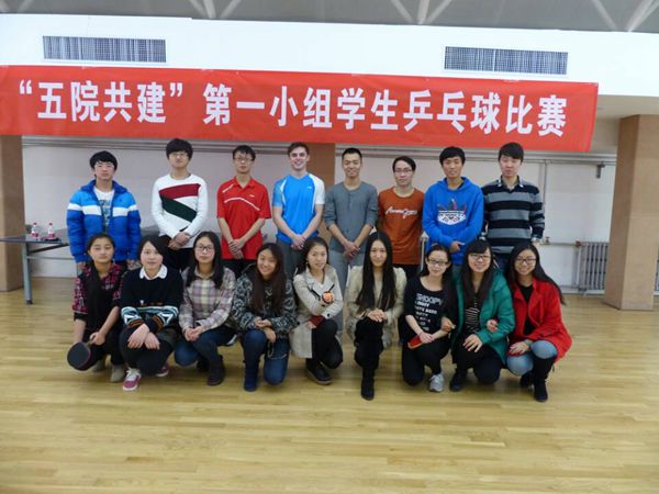 承办的“五院共建”第一小组学生乒乓球比赛在中央民族大学逸夫体育馆举行。