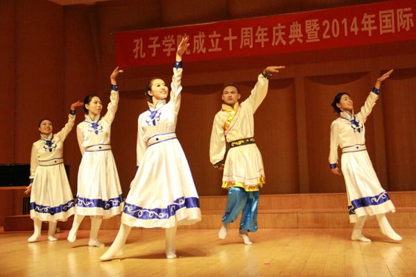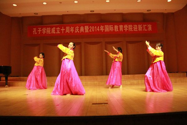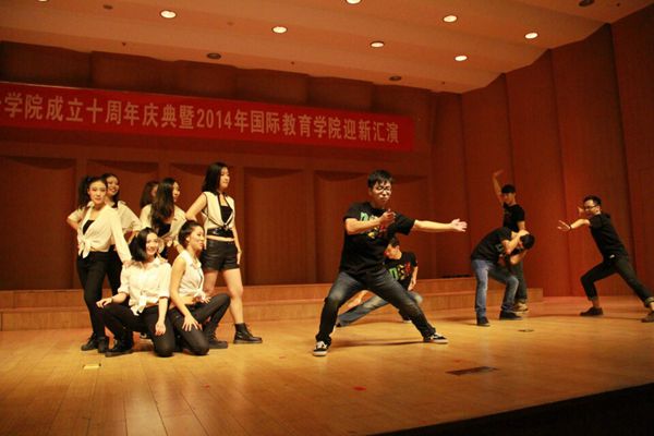 学子走出中国走向世界的强烈愿望。晚会的最后,14级新生的舞蹈串烧“小苹果”出乎所有观众的意料,同学们将民族韵律操与流行歌曲很好地融合在一起,共同演绎了这首流行歌曲,清新脱俗,既体现了新生的青春活力,有很好地展现了中央民族大学的特色。
