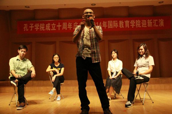 奖学金生也登上了舞台,为我们带来了幽默风趣的“三句半”,表达了他们对民大的感谢以及对学习汉语地浓厚兴趣。之后,田艳老师和陈作宏老师协两位13级硕士生为我们带来了精彩的配乐诗朗诵“透过历史的眼眸”, 热情洋溢和深情真挚地朗诵感动了在座的每一位老师、同学,为晚会的圆满举办增添了浓墨重彩的一笔。