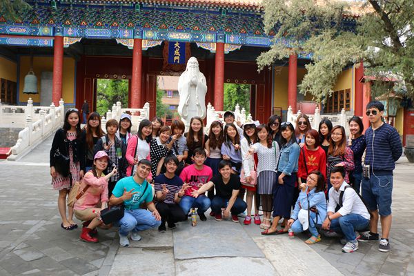 同学们首先来到雍和宫——北京市内最大的藏传佛教寺院。该寺院创建於清康熙年间,距今已有300年历史。主要由三座精致的牌坊和五进宏伟的大殿组成。从飞檐斗拱的东西牌坊到古色古香东、西顺山楼共占地面积66,400平方米,有殿宇千余间。雍正驾崩后,乾隆将雍和宫改建为藏传喇嘛寺。随着导游的讲解,同学们无不被它辉煌的皇家园林建筑、神秘的藏传佛教造像以及独特的藏传佛教文化所吸引。一路上纷纷拍照留念。随后,在导游的带领下,同学们还参观了孔庙和国子监,亲身体验孔子儒家文化的源远流长、博大精深。在孔庙,大家深刻地了解到孔子的博学仁爱。期间,学生们争先与孔子铜像合影留念。大家听着关于砚水湖、太学府、触奸柏、进士题名碑等各个典故,学到了很多历史知识。离开太庙,同学们来到了国子监。辟雍殿是国子监的核心,是皇帝“临雍讲学”的课堂,从康熙起,皇帝一经即位,必须在此讲学一次,称“辟雍大典”。想当年皇帝他高坐龙椅,由传胪官站在殿外,向跪聆训谕的莘莘学子讲课的场景,该是何等肃穆庄重。