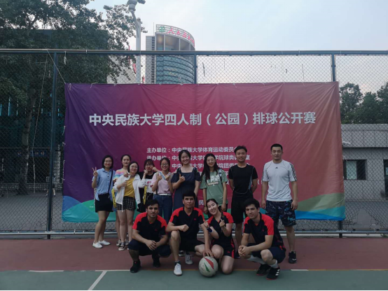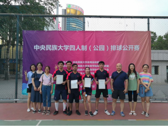 中央民族大学第一届“四人制”(公园)排球公开赛于6月24日在中央民族大学排球场圆满落幕。由巴努(哈萨克斯坦)、胡一江(土库曼斯坦)、胜利(塔吉克斯坦)、那寺心(塔吉克斯坦)四名国际学生组成的国教队,在最终的决赛中以总比分2:0战胜经院1队,获得冠军。这是继今年足球赛后,众赢国际版