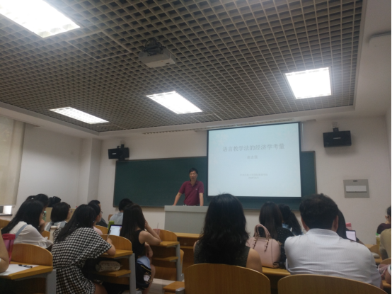 在此次的讲座上,他从经济学的角度向我们揭示了外语教学法效率问题研究的这个盲区,以经济学的视角来看提高教学法的效率问题。讲座上他提出了“效力”、“效率”、“效益”和“教学成本”等概念,让我们以一个新的视角去思考如何将教学法的效率变得最大化并且用最小的教学成本取得最大的教学效益。
