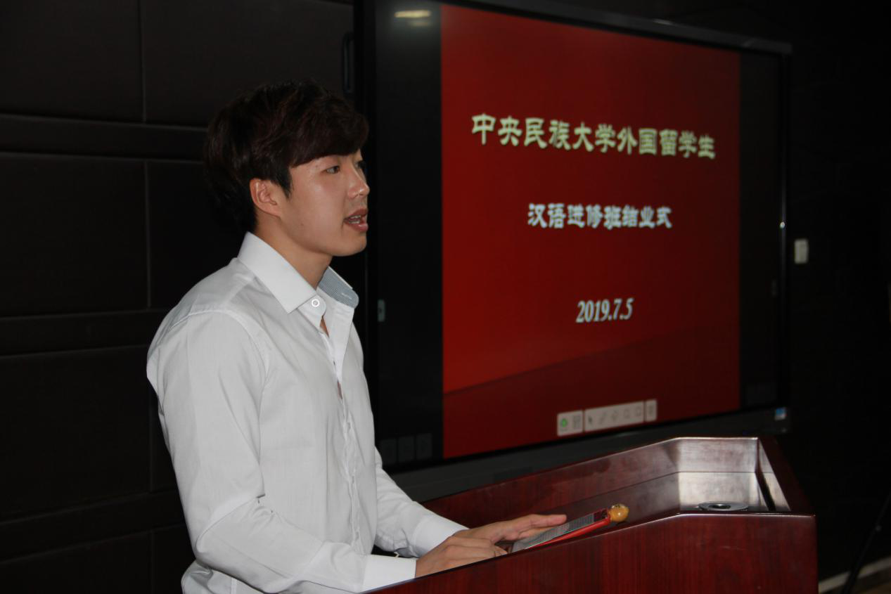 买力克老师首先介绍了出席本次结业式的领导和老师,并向来自韩国、日本、哈萨克斯坦、爱尔兰、埃及、津巴布韦、土耳其、乌兹别克斯坦、意大利等14个国家共49位结业的国际学生表达了祝贺。接下来,两名学生代表分别发言,表达着他们对众赢国际