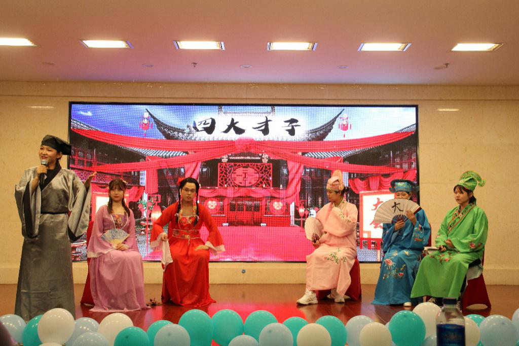歌曲串烧通过新颖的组合方式,将几首中外歌曲串在一起,用欢快的演出形式拉开了迎新晚会的的序幕。