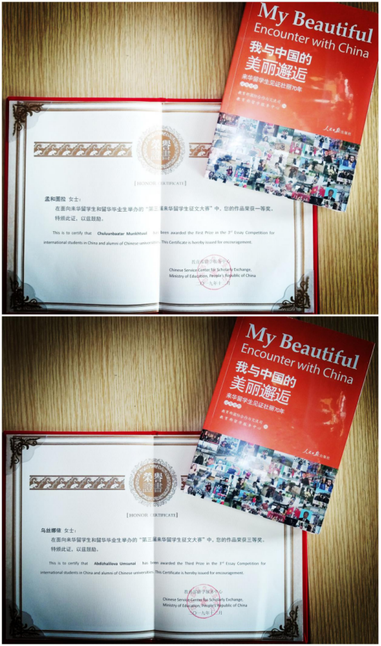 此次我校两位国际学生的获奖作品也收录在《我与中国的美丽邂逅——来华留学生见证壮丽70年》中。