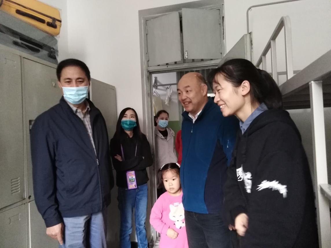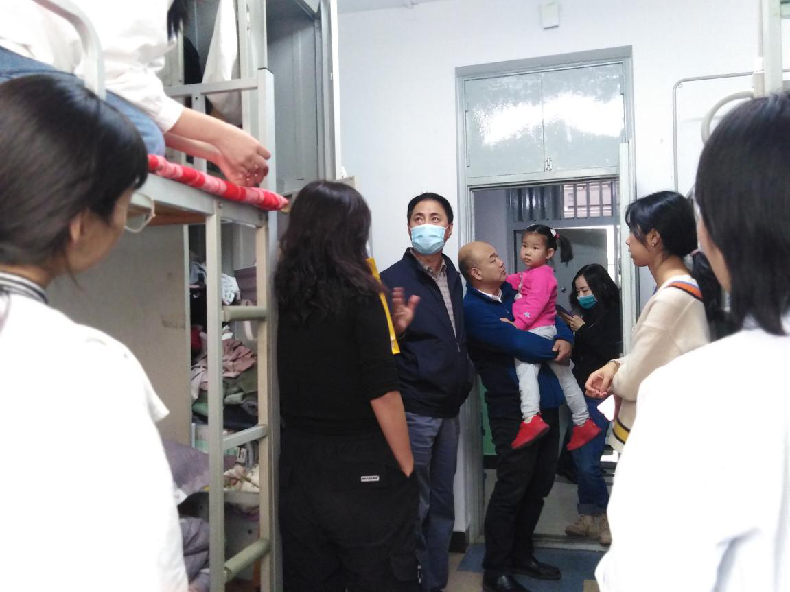 院领导一行先后来到女生3号公寓和男生5号公寓,查看新生精神面貌和宿舍布置情况。