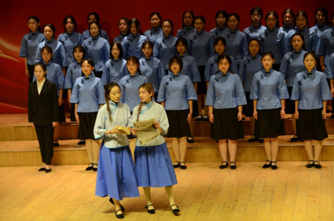 舞台上,生动的情景剧表演呈现出战争年代的民生百态,真实还原了昔日大学生们以高亢热情投入爱国运动的场面。历史上的一幕幕重现在观众眼前,令人身临其境。随着缓缓响起的钢琴伴奏,同学们带来了婉转悠扬的《长城谣》。每位同学都全情投入,热情四溢,获得了全场的好评。