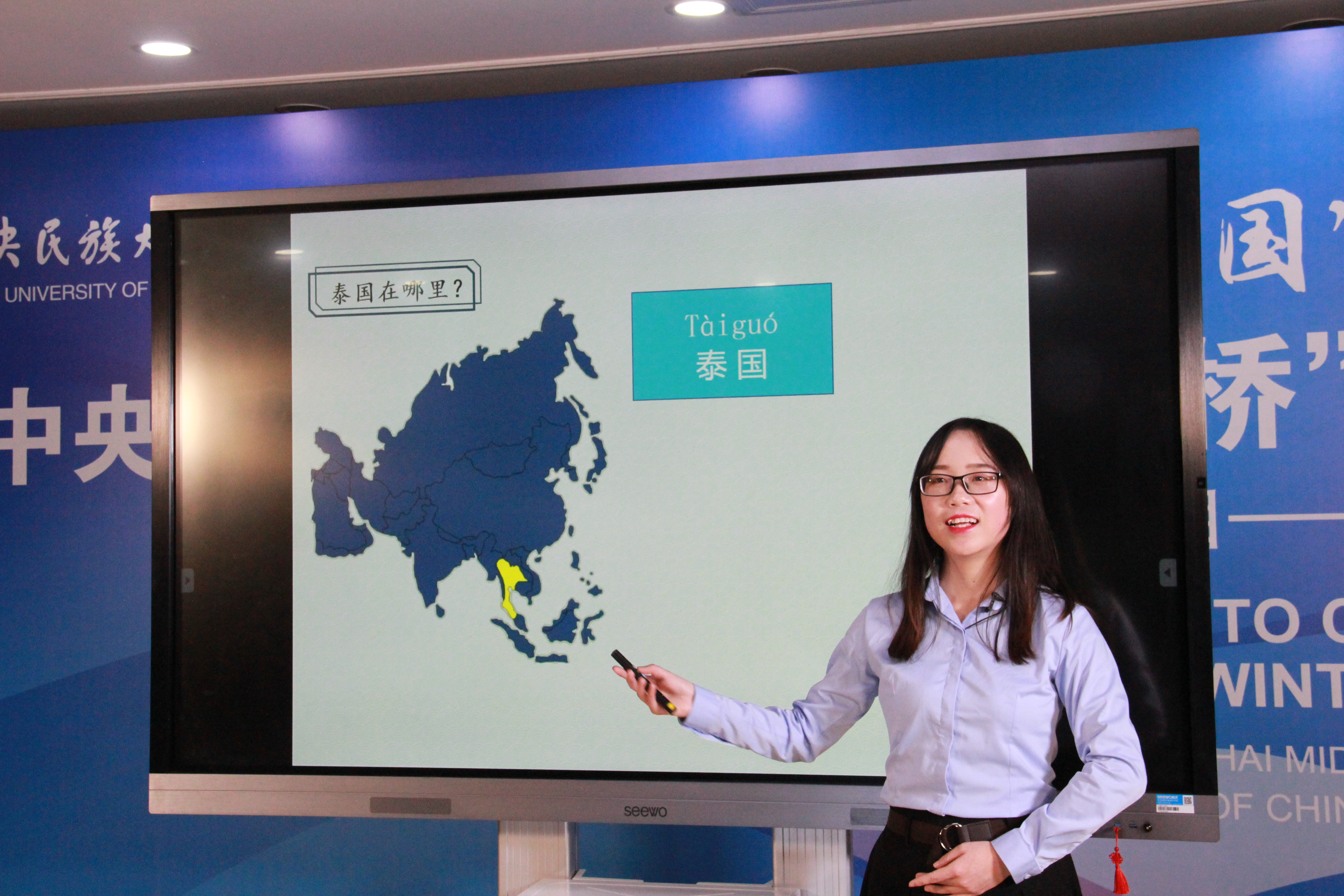 泰国北榄易三仓学校中文组负责人韩丽老师介绍了参加项目的学生情况,并对教育部中外语言交流合作中心和中央民族大学表达了衷心的感谢。