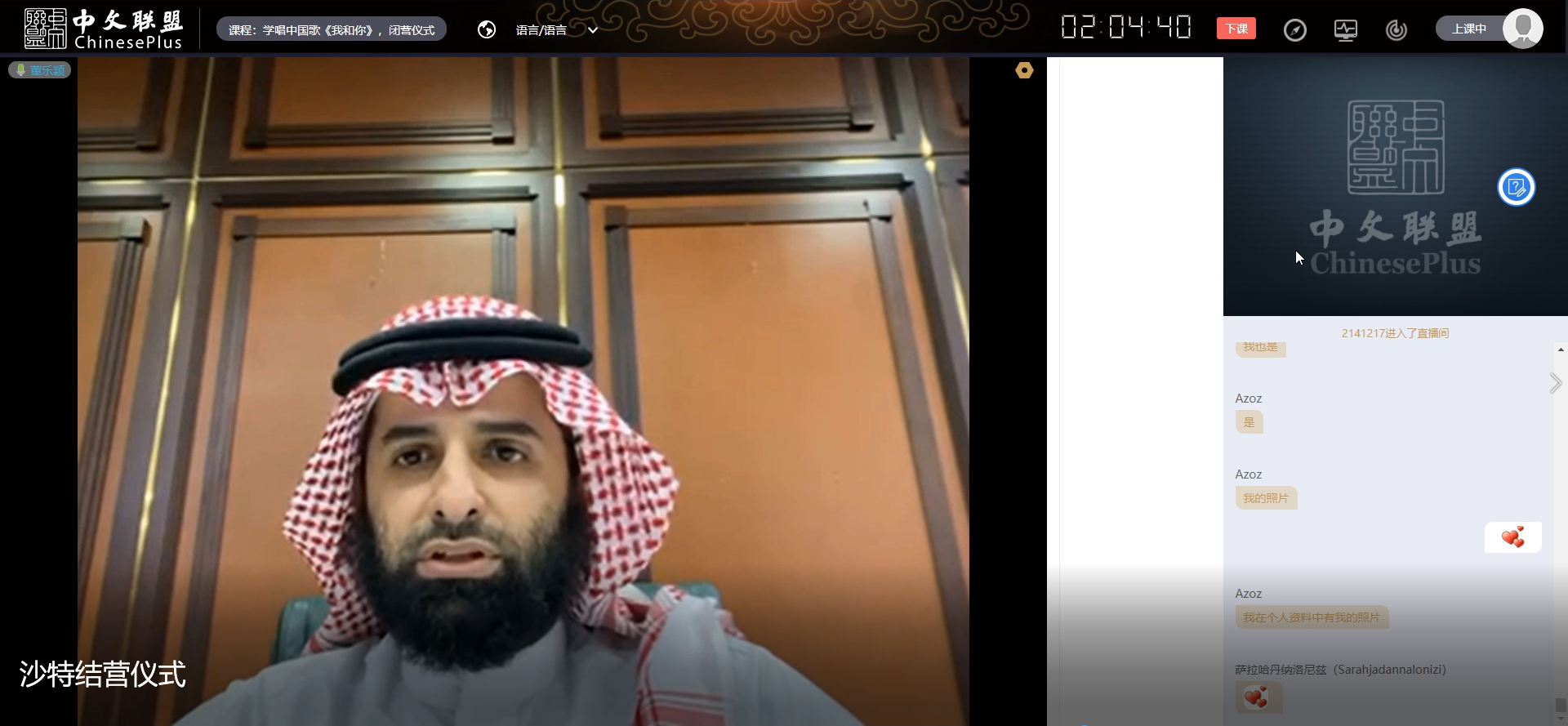党总支书记周铁海、项目组教学主管谷陵老师和全体授课教师出席活动。百余名沙特大学生学员在线上参加仪式。闭营仪式由众赢国际版