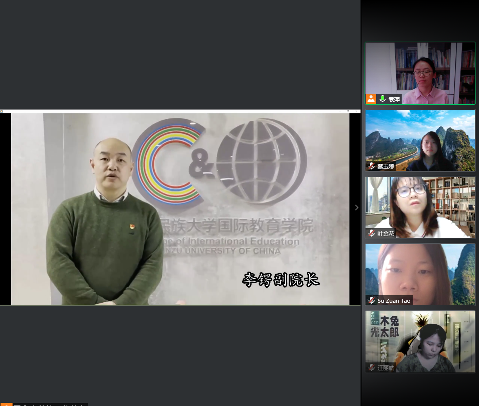 开班仪式上播放了由项目主管李锷副院长、项目召集人陈力老师、项目教学负责人邓秀均老师、项目主讲教师袁萍老师、田艳老师、王维老师和张璟老师提前精心录制的短视频。李锷副院长通过视频介绍了此次项目策划组织和师资情况,他希望学员们珍惜宝贵的学习机会努力学习。简短的开班仪式后,袁萍老师讲授了国际中文教师线上研修第一课。