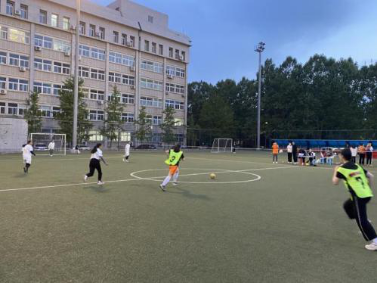 比赛过程中,国教运动员们意气风发,斗志昂扬,以最饱满的精神面对强劲的对手。现场气氛热烈,观众的欢呼声此起彼伏。4月28日晚19:00,在与藏学研究院的比赛中,各位球员配合默契,团结一致。用顽强的意志坚守防线,以显著的控球优势,始终把握着比赛的主动权,向场边观众展示了国教女足的精气神。当晚,副院长兼党总支副书记李锷也亲临现场,与同学们共同观战,为运动员们加油助威。