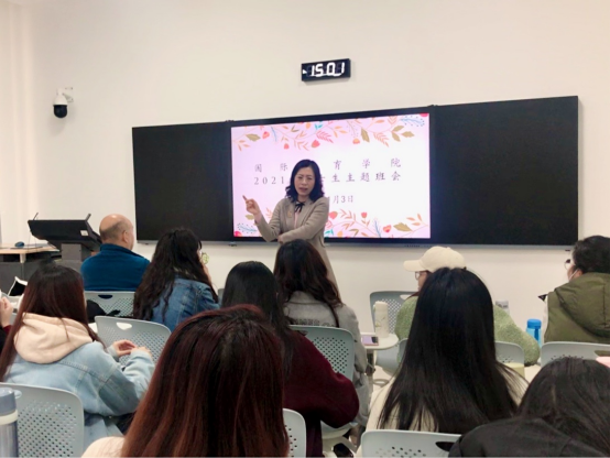 辅导员刀慧娟老师又讲解了丰台校区学生管理相关规定,强调了要落实疫情防控管理;并为同学们介绍了未来几周的活动规划,如:入党积极分子主题教育会活动、安全反诈线上活动、体育文化月等。
