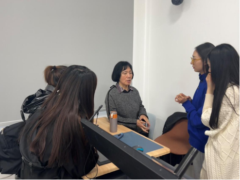 会后张英老师与同学们进行交流