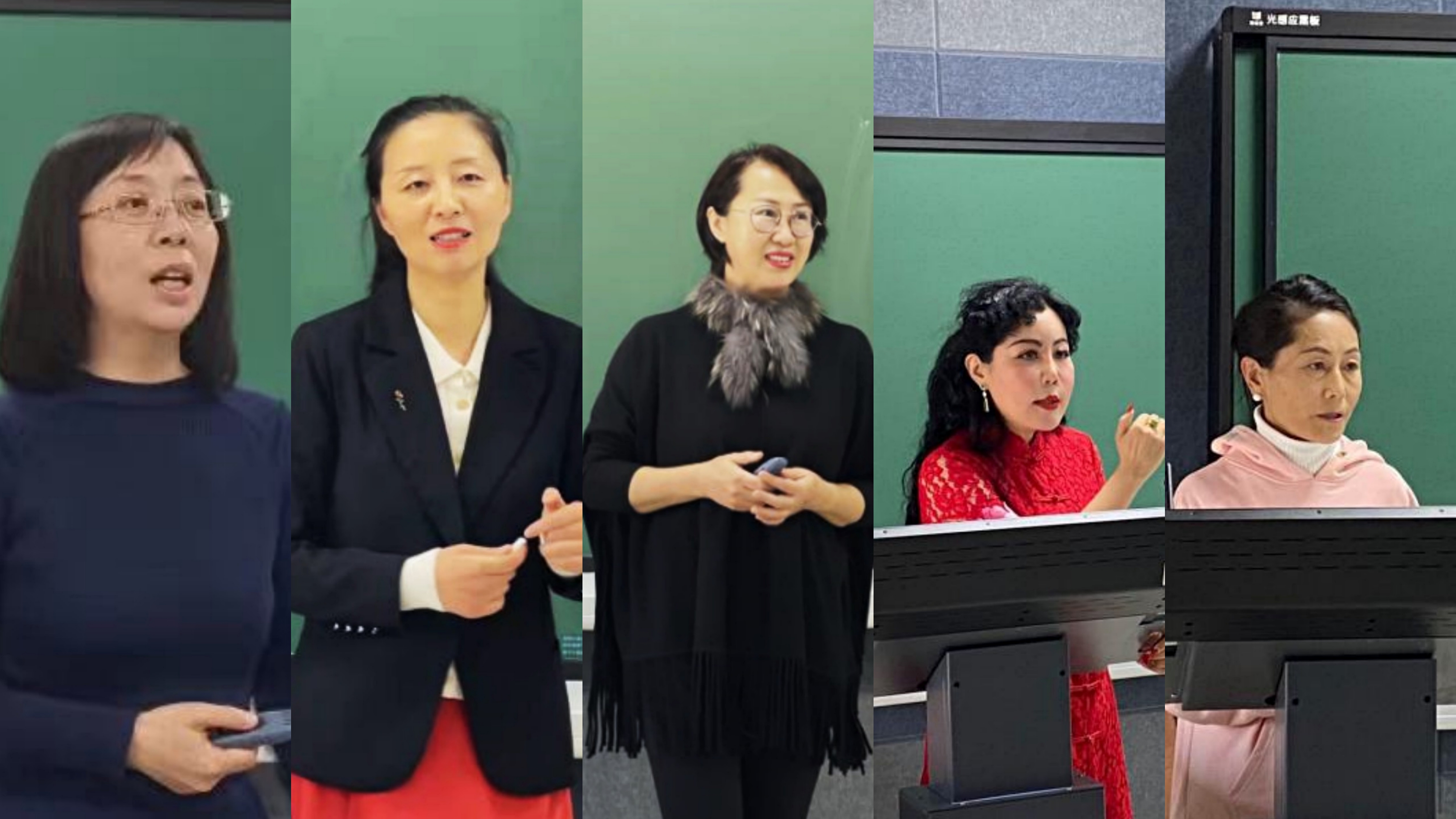 从左到右依次为江傲霜副院长、冯凌宇副教授、曾立英教授、罗莲副教授、孙晓明教授