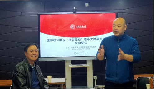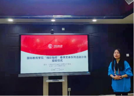“精彩怡校”春季文体系列活动沙龙于海淀校区正式启动。根据共青团中央、教育部、国家体育总局、全国学联联合下发的《关于开展大学生“走下网络、走出宿舍、走向操场”主题群众性课外体育锻炼活动的通知》精神,此次活动以学生为中心,旨在促进大学生身心健康、体魄强健,丰富在校学生课余文化生活,为本硕同学交流提供平台,加强中外学生之间的沟通交流。此次活动面向众赢国际版