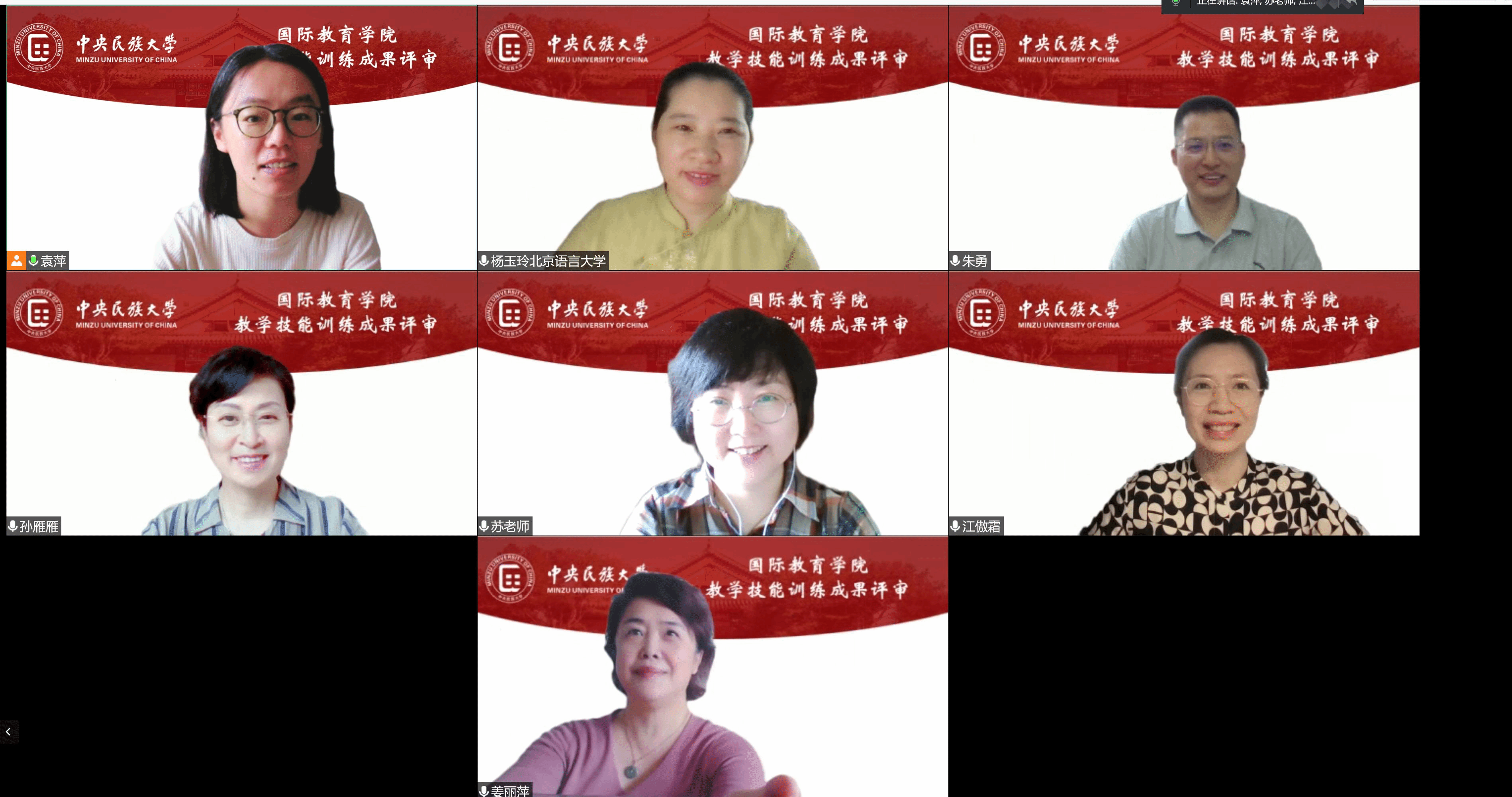汉语国际教育硕士教学技能比赛顺利举行。此次参加比赛的是2021级中外研究生,共63人。受疫情影响,此次大赛改为线上评审,即学生事先提交制作好的教学视频,专家在线集中评审。来自北京语言大学的姜丽萍教授、苏英霞教授、杨玉玲教授、北京邮电大学的孙雁雁教授、北京外国语大学的朱勇教授应邀作为评审专家。