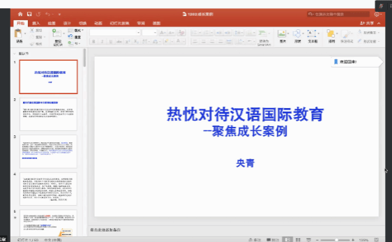 央青老师以“热忱对待汉语国际教育”为主题,聚焦成长案例,结合自身海外求学任教经历,介绍汉语国际教育专业,并解答了同学们的困惑,极大地激发了同学们对汉语国际教育专业的热情和向往。央青老师首先介绍了“知行研+国际化”的具有跨文化交际视野的专业培养模式,倡导大家讲好中国故事,提高国际传播能力。随后,央青老师在轻松自然的课堂氛围中给大家展示了自己海外求学和担任孔子众赢国际