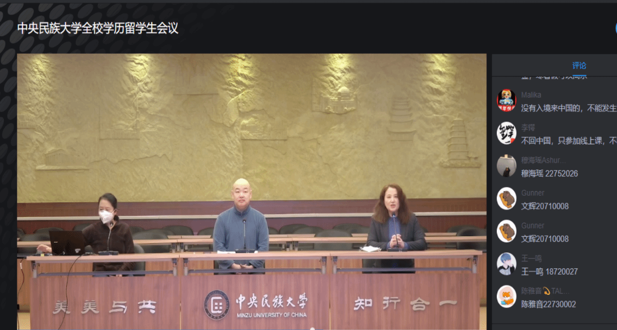 负责国际学历生和奖学金事务的陈力老师详细介绍了国际学生来华返校最新政策、学历生管理和奖学金管理方面的规定和要求。与会老师与同学们在直播评论区实时进行沟通,解答同学们的问题。同学们纷纷向学校和老师们表示感谢。
