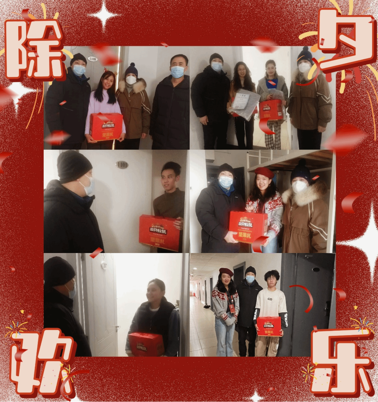 领导和老师来到西门留学生公寓和学生8号公寓楼慰问在校国际学生和两名参加春晚表演的中国学生,捎来诚挚的问候和节日祝福。