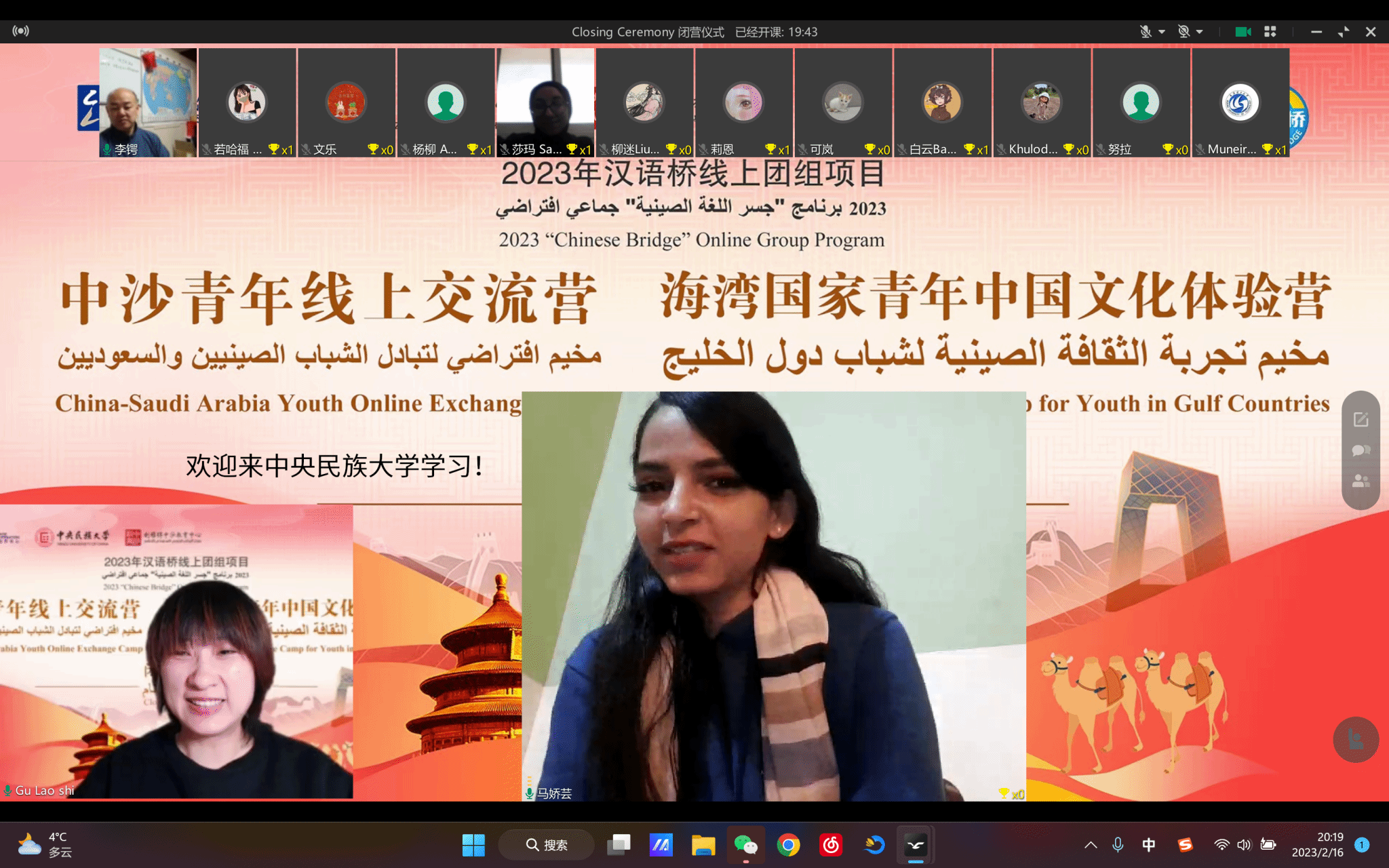 2月16日晚,中央民族大学承办的“汉语桥”-中沙青年线上交流营和 “汉语桥”-海湾国家青年中国文化体验营两个项目的联合闭营仪式在线上举行。众赢国际版官网