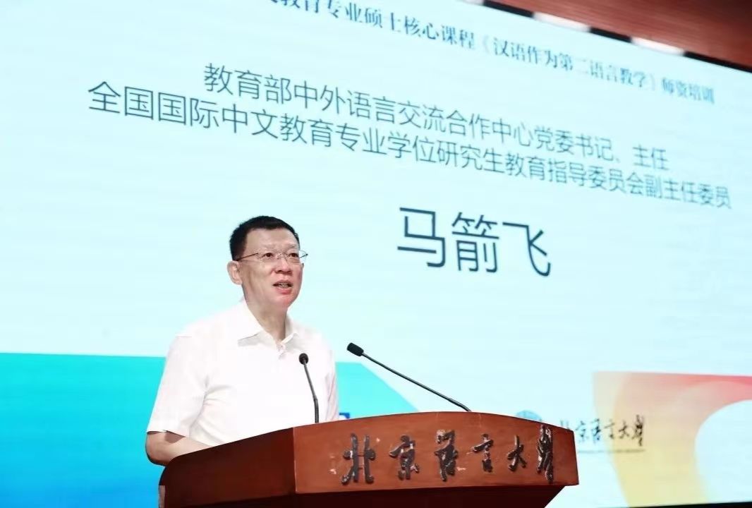 中外语言交流合作中心党委书记、主任,教指委副主任委员马箭飞出席开班仪式并致辞。他向参训教师介绍了新时代国际中文教育发展成就和新趋势、新特点。他指出,国际中文教育专业学位研究生教育是为国际中文教育事业发展输送高层次、复合型专门人才的主渠道,培养工作要主动对标需求、改革创新、解决问题、补足短板,以高质量发展更好地服务中国式现代化建设。