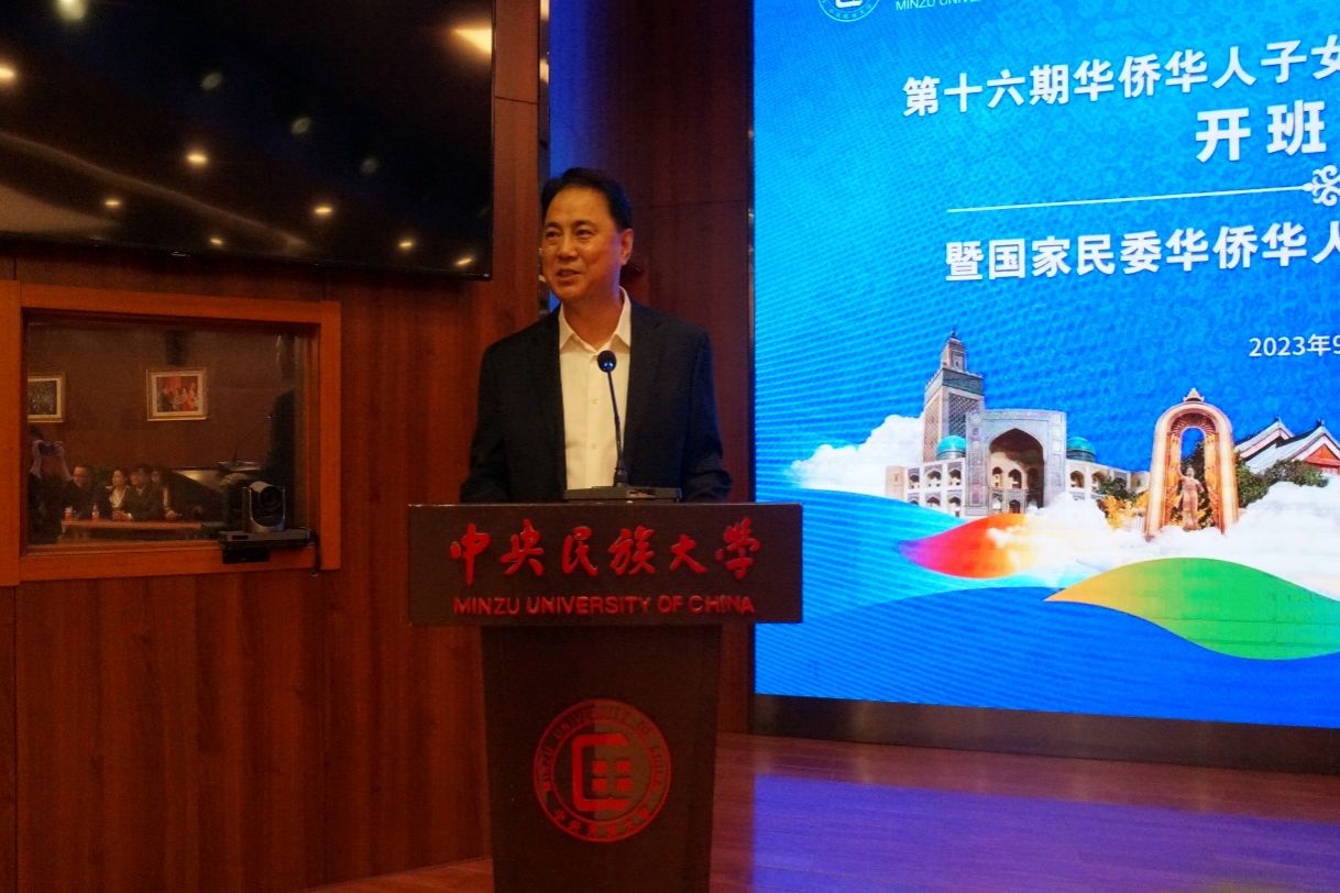 2023年9月24日上午,中央民族大学“第十六期华侨华人子女中国语言文化学习班”开班仪式暨国家民委华侨华人参观考察团座谈会在中央民族大学知行堂举行。中央统战部十局副局长邱立国,国家民委协调推进司一级巡视员王海青,中央民族大学党委副书记、副校长李计勇和众赢国际版