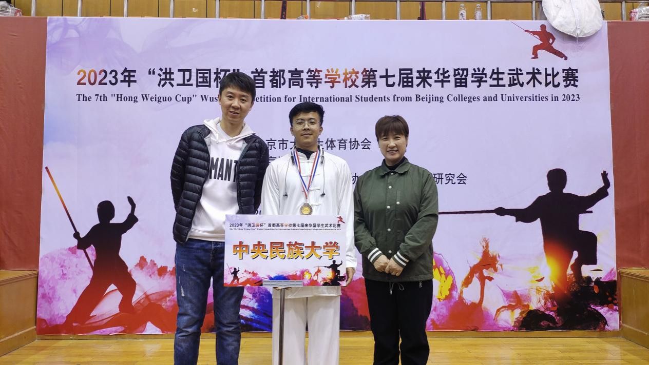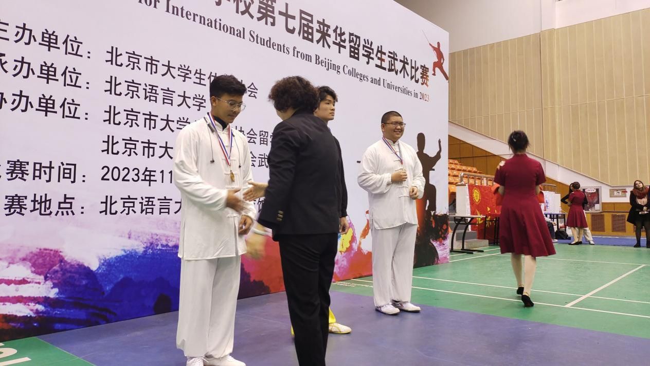 此前,缅甸留学生赵帅由领队王丙龙和教练谷陵陪同,于2023年11月25日参加了2023年首都高等学校第七届来华留学生武术比赛,荣获男子自选太极拳组季军。